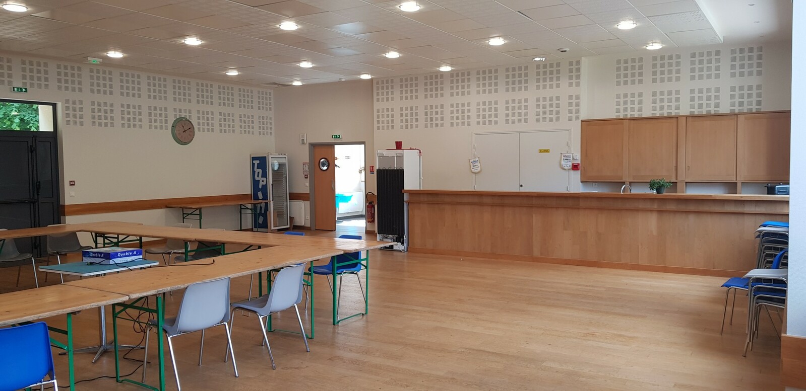 Au 1er étage du Foyer Rural, une salle d’une capacité de 100 personnes, sur une surface de 13 x 12 m, est disponible à la location, elle dispose de sanitaires et d'un hall d’entrée, d'un coin cuisine et d'un ascenceur. La vaisselle est à disposition et le chauffage est inclus dans le prix.